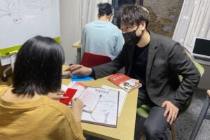 哲学対話の授業はトピックに関するお題を読み、そして塾長が作成したオリジナルワークシートに答えや自分の考えを記入し、最後はフィードバックを受け取ります。「人は何のために生きているのか」「なぜ勉強するのか」「差別や対立の原因は何?」なの日常のあらゆる疑問に基づいた題材を用います。
