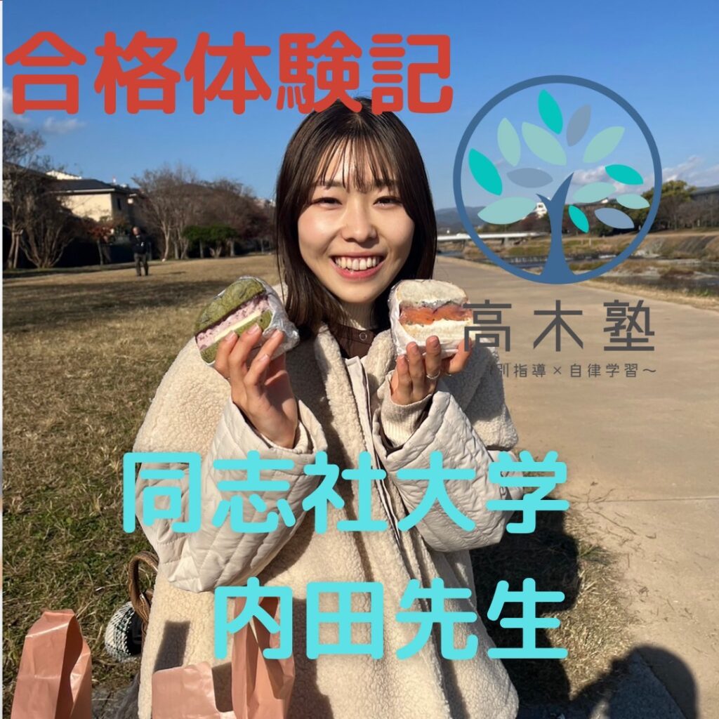 本日は高木塾の講師、内田先生の同志社大学、合格体験記を載せさせて頂きます! 受験に向かう生達にエールとなれば幸いです。