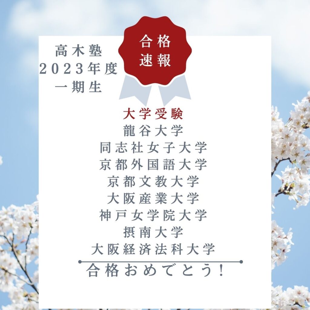 先週の金曜日をもちまして、高木塾の全生徒達の入試が終了しました。(京都府公立高校入試・私立高校入試・大学入試)