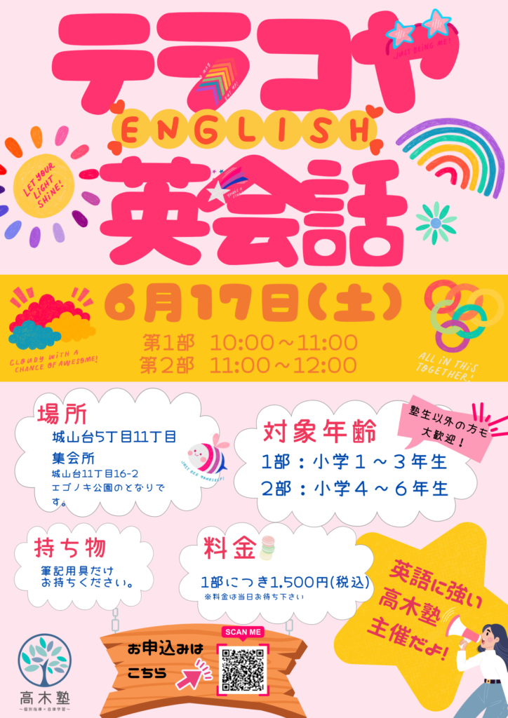 英語を言語として「使う」ということを小学生の皆様に体験していただくイベントとなっております。