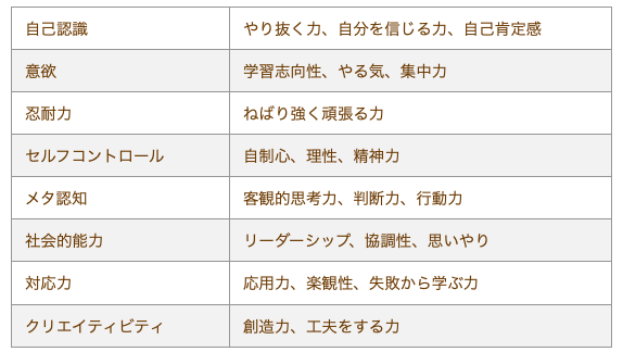 などが代表的な例としてあげられます。これらはIQのようにテストで測れるものではない、各々の内面的なスキルを表しています。