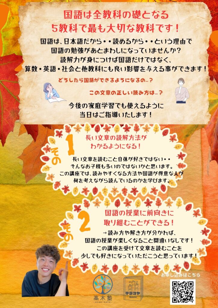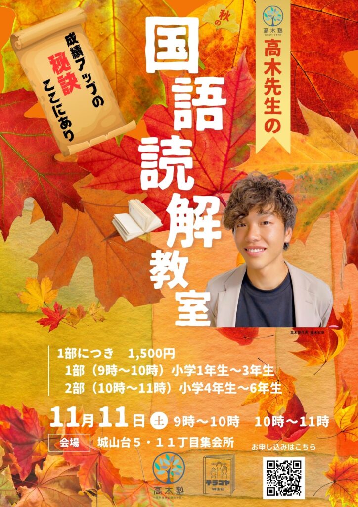 この度来たる11月11日(土)に国語読解特訓教室を開催いたします!