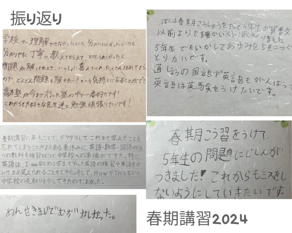 まだ数日残っておりますが、【春期講習を受けて成長した点】などを、在校生達に書いていただきましたので、こちらにアップロードさせて頂きます!生徒達のリアルな声(文章)を是非ご覧下さい。