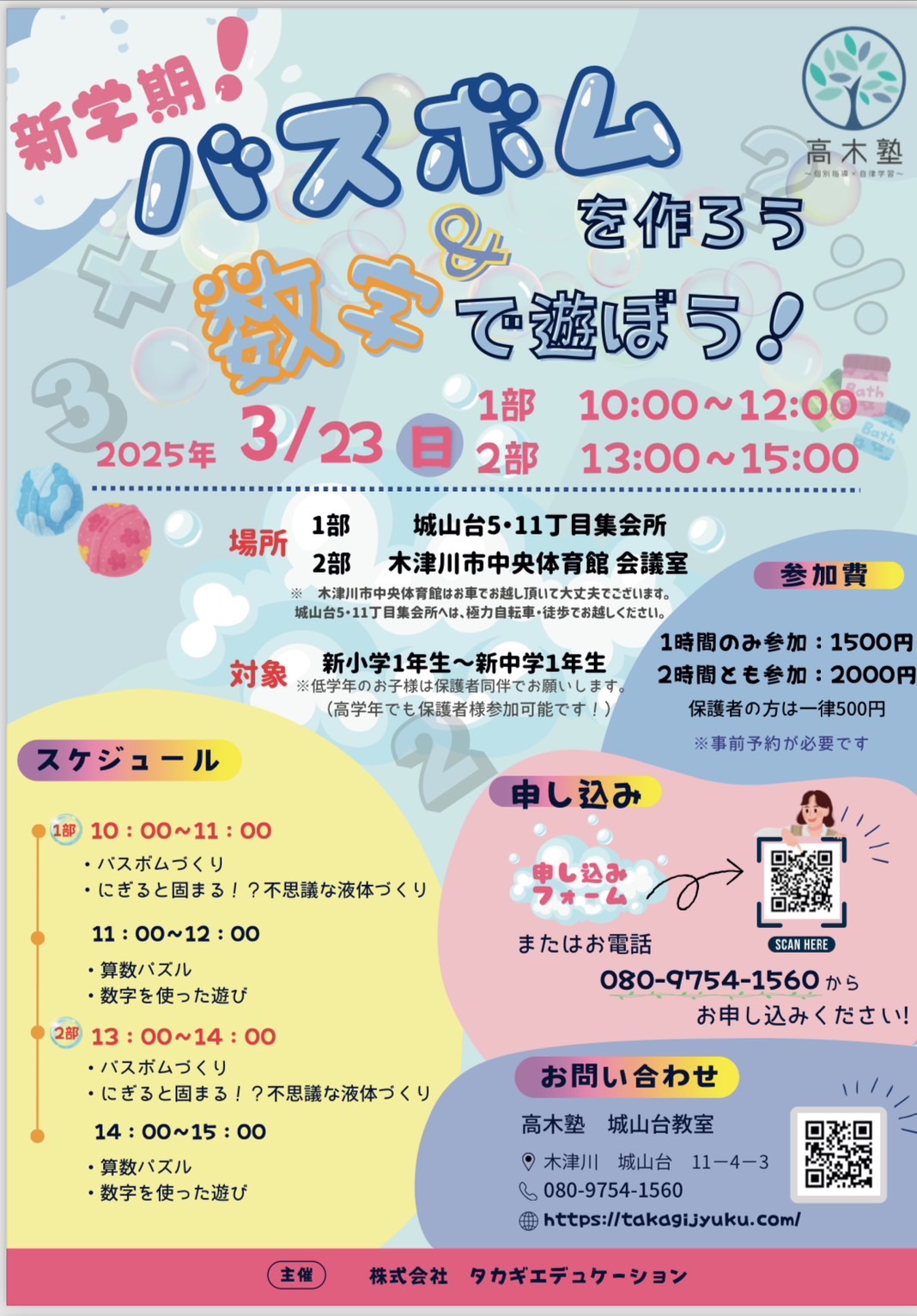 みなさんこんにちは‼︎高木塾の遠藤です! 今回、高木塾の卒業生であり、現在講師の「上村先生」と「西釋先生」と私遠藤で【理科実験教室&算数教室】を開催することに決定しました🎊 理科実験 … 続きを読む